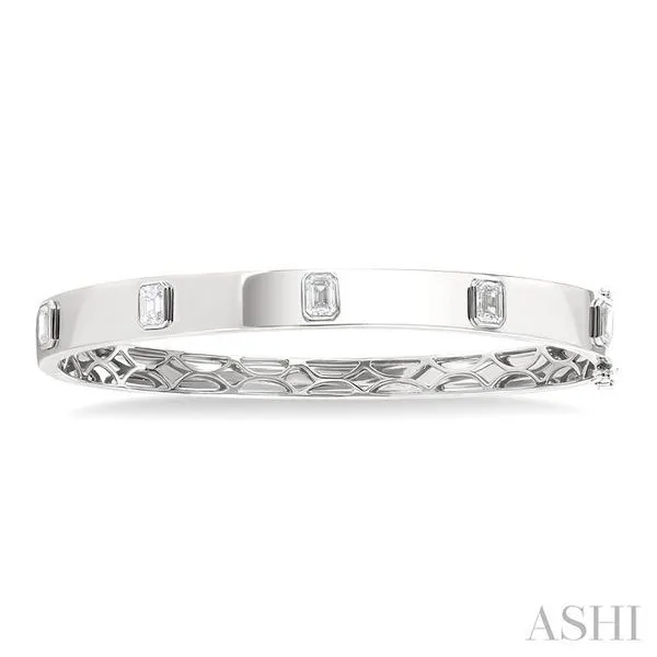 (319) 752-31961 1/2 Ctw Bezel Set Emerald Cut Diamond Bangle in 14K White Gold