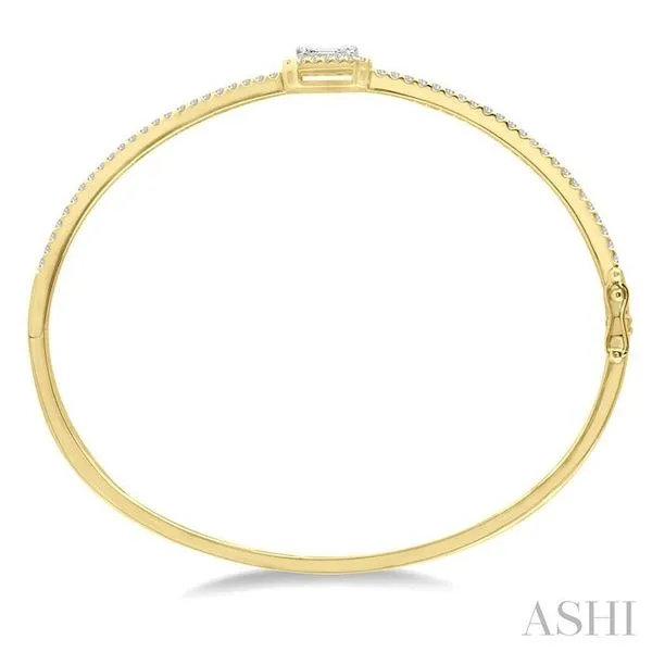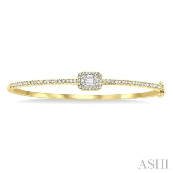 (319) 752-31961 Ctw Emerald Shape Fusion Baguette and Round Cut Diamond Stackable Bangle in 14K Yellow and White Gold