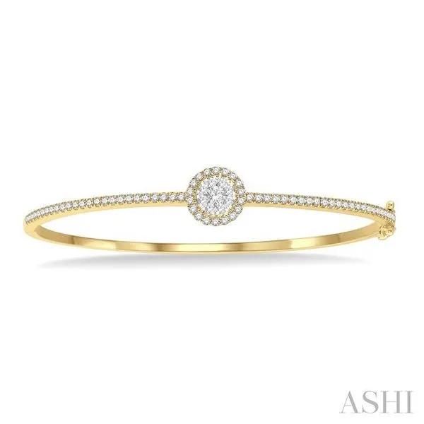 (319) 752-31961 Ctw Round Shape Lovebright Round Cut Diamond Stackable Bangle in 14K Yellow and White Gold