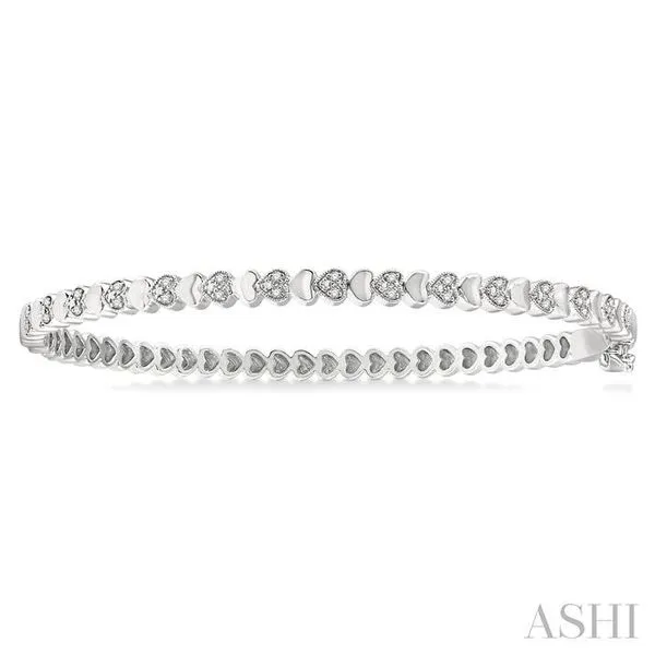 (319) 752-31961/6 Ctw Puffed Heart Plain and Single Cut Diamond Bangle in Sterling Silver