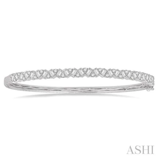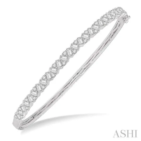 (319) 752-31962 Ctw Zigzag Baguette and Round Cut Diamond Bangle in 14K White Gold