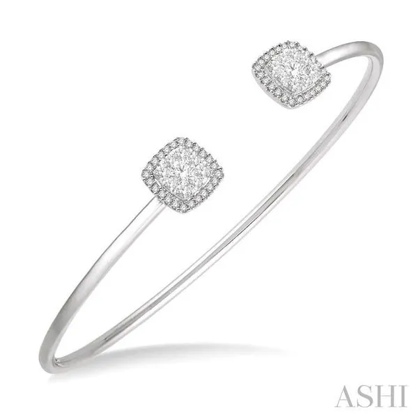 (319) 752-31963/4 Ctw Cushion Shape Lovebright Open Cuff Diamond Bangle in 14K White Gold