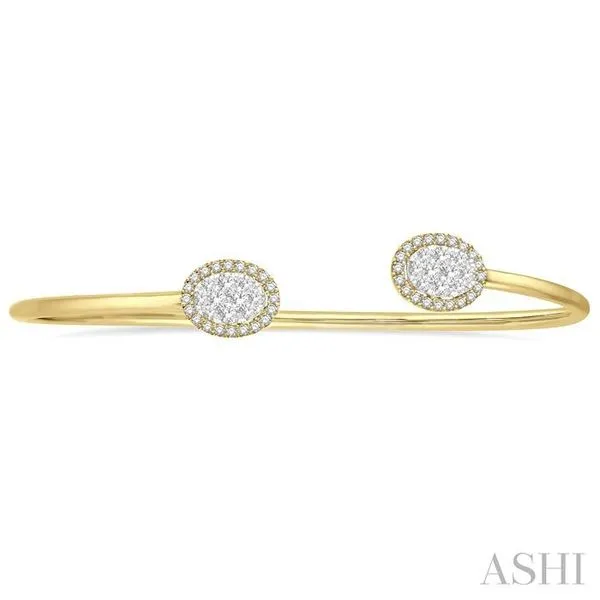 (319) 752-31965/8 Ctw Oval Shape Lovebright Open Cuff Diamond Bangle in 14K Yellow and White Gold