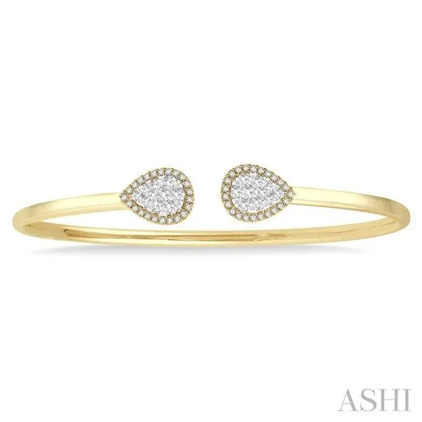 (319) 752-31965/8 Ctw Round Cut Lovebright Diamond Pear Shape Open Cuff Bangle in 14K Yellow and White Gold