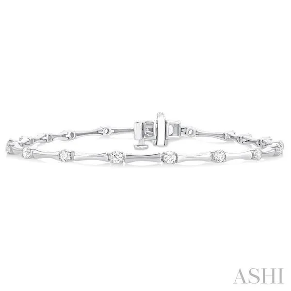 (319) 752-31961 Ctw Bamboo Internodes Round Cut Diamond Fashion Bracelet in 14K White Gold