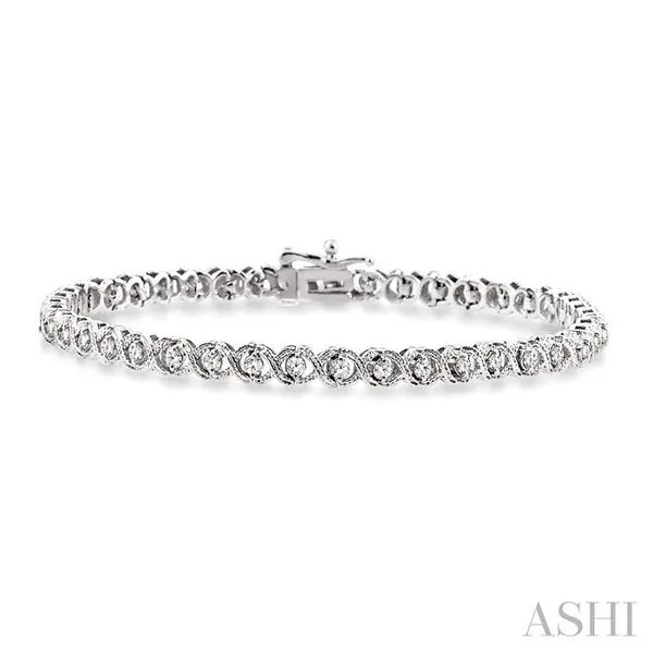 (319) 752-31961 Ctw Round Cut Diamond X & O Link Bracelet in 10K White Gold