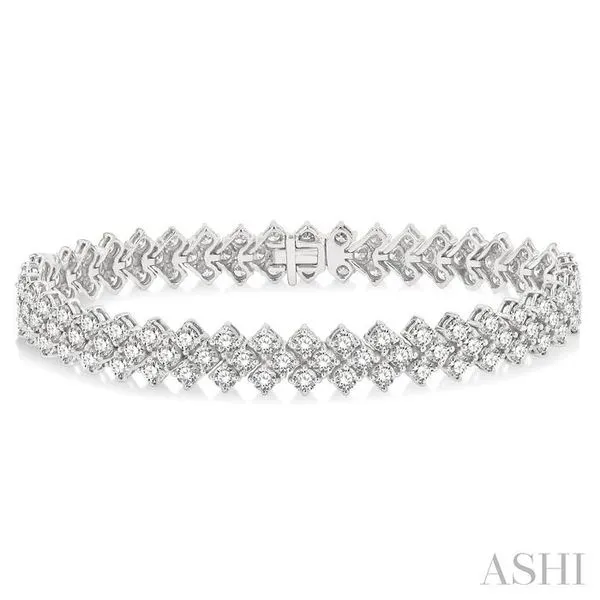 (319) 752-319610 Ctw Chevron Link Round Cut Diamond Tennis Bracelet in 14K White Gold