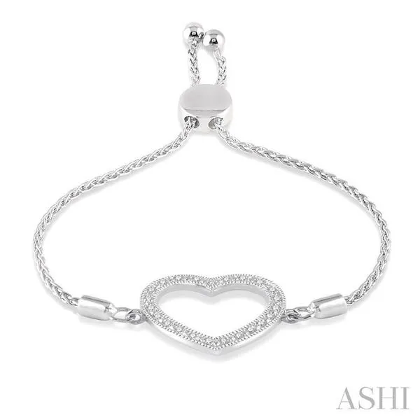 (319) 752-31961/10 Ctw Heart Charm Round Cut Diamond Sterling Silver Lariat Bracelet