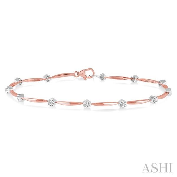 1/10 Ctw Round Cut Diamond Illusion Plate Link Bracelet in 10K Rose and White Gold Image 2 Becker's Jewelers Burlington, IA