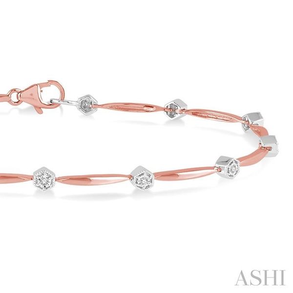 1/10 Ctw Round Cut Diamond Illusion Plate Link Bracelet in 10K Rose and White Gold Image 4 Becker's Jewelers Burlington, IA