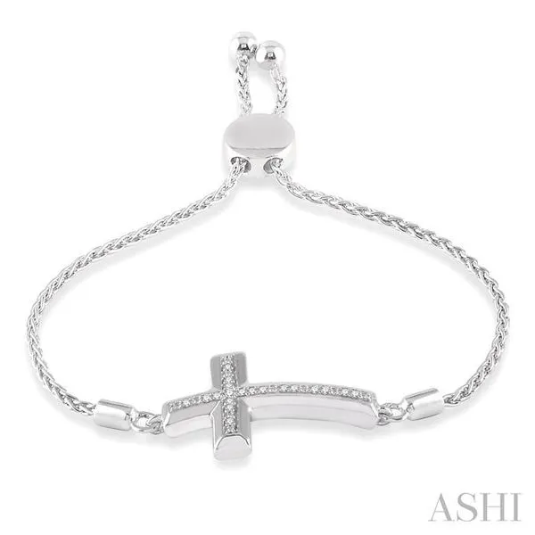 (319) 752-31961/20 Ctw Cross Charm Round Cut Diamond Sterling Silver Lariat Bracelet