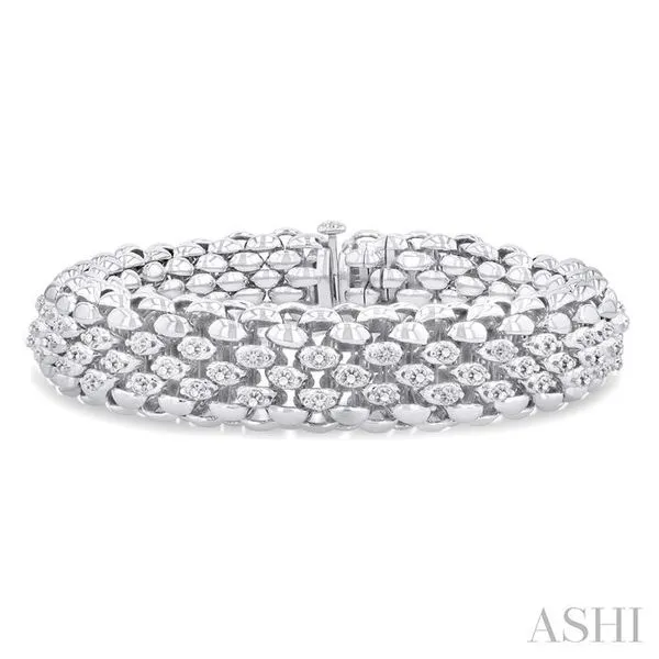 (319) 752-31961/4 Ctw Bold Weave Hollow Cylindrical Design Round Cut Diamond Fashion Bracelet in Sterling Silver