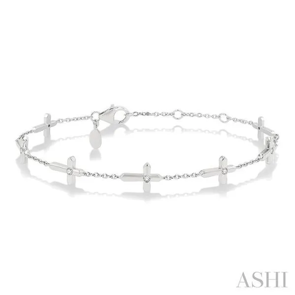 (319) 752-31961/6 Ctw Cross Charm Petite Round Cut Diamond Station Bracelet in 10K White Gold