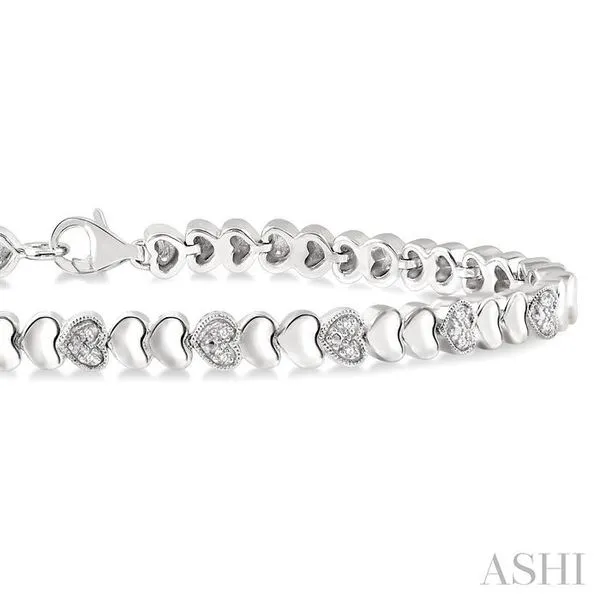 (319) 752-31961/6 Ctw Puffed Heart Plain and Single Cut Diamond Fashion Bracelet in Sterling Silver
