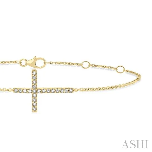(319) 752-31961/8 Ctw Petite Reclined Cross Round Cut Diamond Fashion Bracelet in 10K Yellow Gold