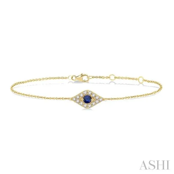 (319) 752-31962.60 MM Round Cut Sapphire and 1/10 Ctw Evil Eye Round Cut Diamond Precious Petite Fashion Bracelet in 10K Yellow Gold