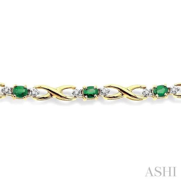 (319) 752-31964x3 MM Oval Cut Emerald and 1/10 Ctw Single Cut Diamond Bracelet in 14K Yellow Gold