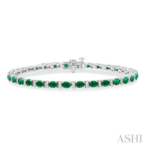 4X3 MM Oval Cut Emerald and 1/3 Ctw Round Cut Diamond Precious Bracelet in 14K White Gold Image 2 Becker's Jewelers Burlington, IA