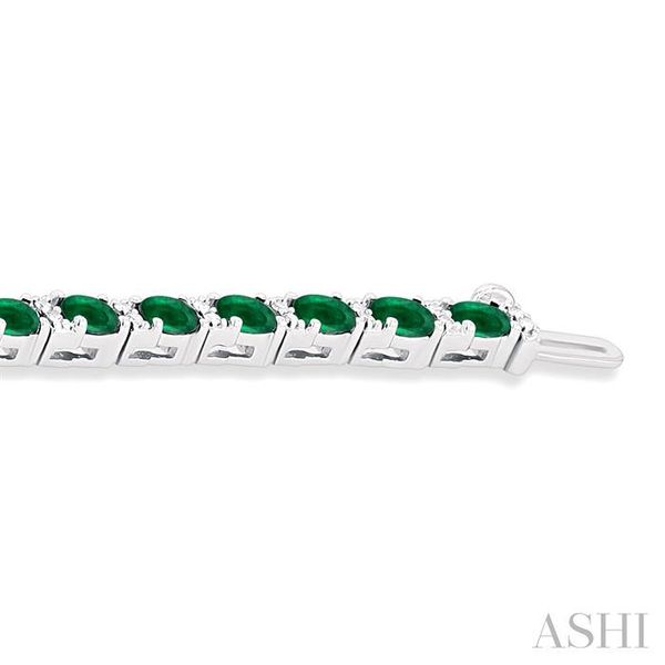 4X3 MM Oval Cut Emerald and 1/3 Ctw Round Cut Diamond Precious Bracelet in 14K White Gold Image 3 Becker's Jewelers Burlington, IA