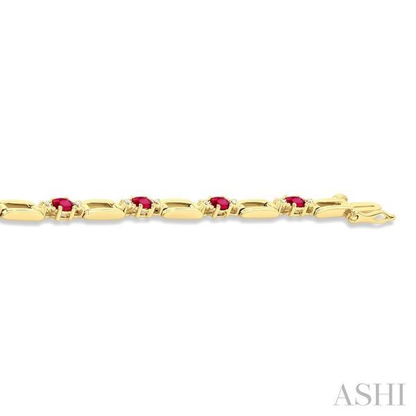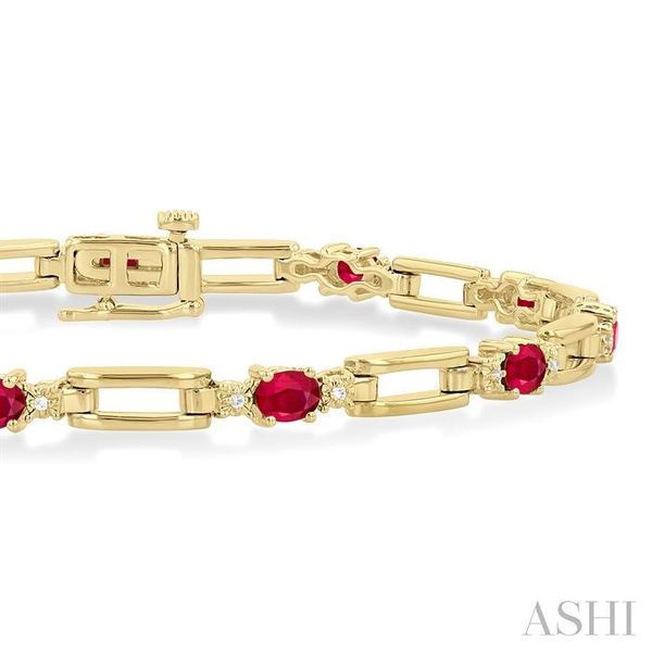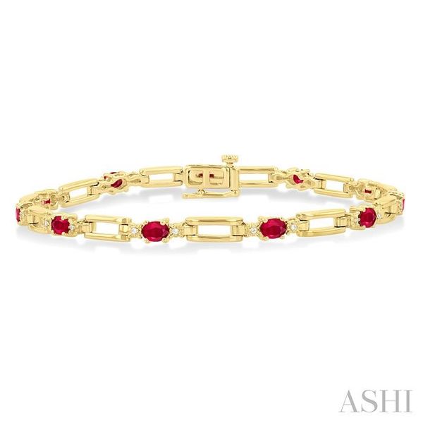 4X3 MM Oval Cut Ruby and 1/10 Ctw Round Cut Diamond Paperclip Bracelet in 14K Yellow Gold Image 3 Becker's Jewelers Burlington, IA