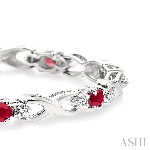 (319) 752-31964x3 MM Oval Cut Ruby and 1/10 Ctw Single Cut Diamond Bracelet in 10K White Gold