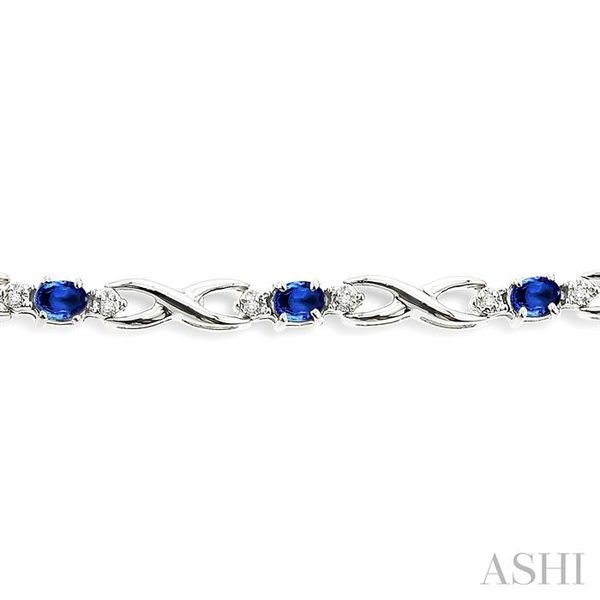 4x3 MM Oval Cut Sapphire and 1/10 Ctw Round Cut Diamond Bracelet in 14K White Gold Image 3 Becker's Jewelers Burlington, IA
