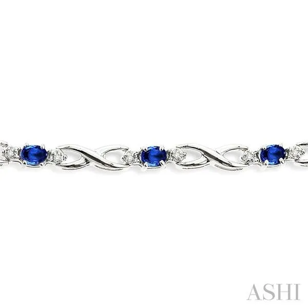 (319) 752-31964x3 MM Oval Cut Sapphire and 1/10 Ctw Single Cut Diamond Bracelet in 10K White Gold