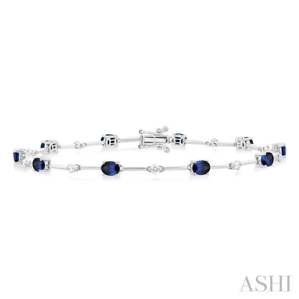 (319) 752-31964x3 MM Oval Cut Sapphire and 1/3 Ctw Round Cut Diamond Precious Bar Bracelet in 10K White Gold