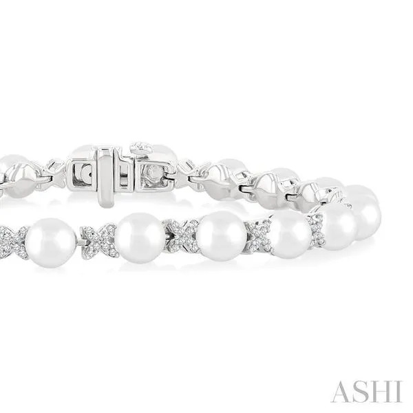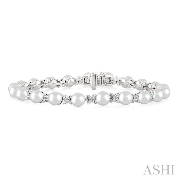 (319) 752-31965 MM Cultured Pearl and 1/2 Ctw Round Cut Diamond Floral Fashion Bracelet in 14K White Gold