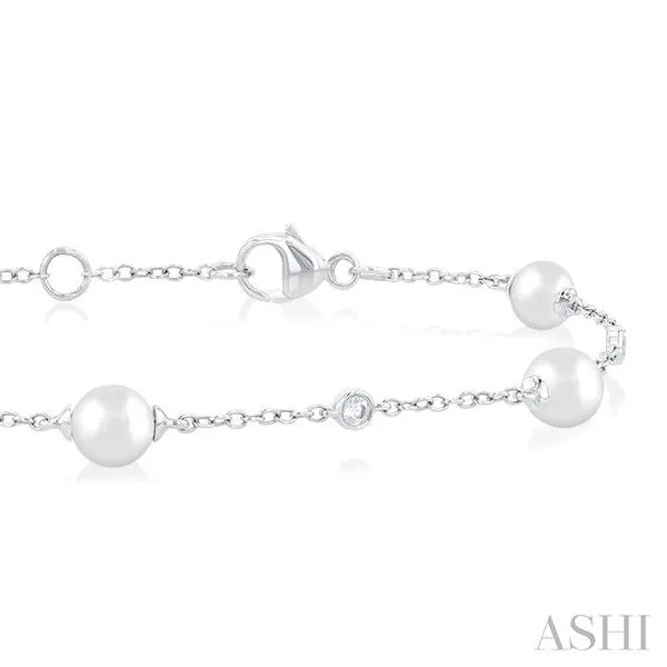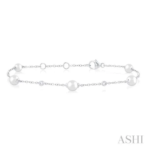 (319) 752-31965 MM Round Shape Cultured Pearl and 1/6 Ctw Round Cut Diamond Fashion Station Bracelet in 14K White Gold