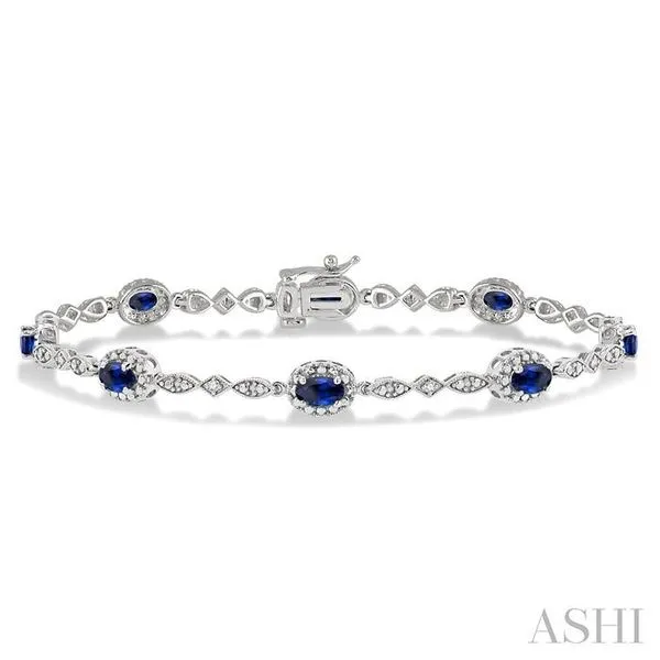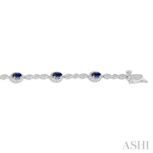 (319) 752-31965x3 MM Oval Cut Sapphire and 1/20 Ctw Single Cut Diamond Bracelet in 14K White Gold