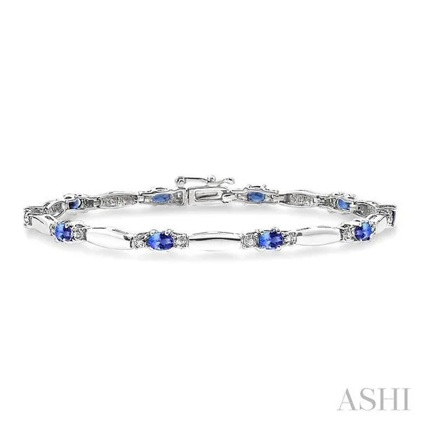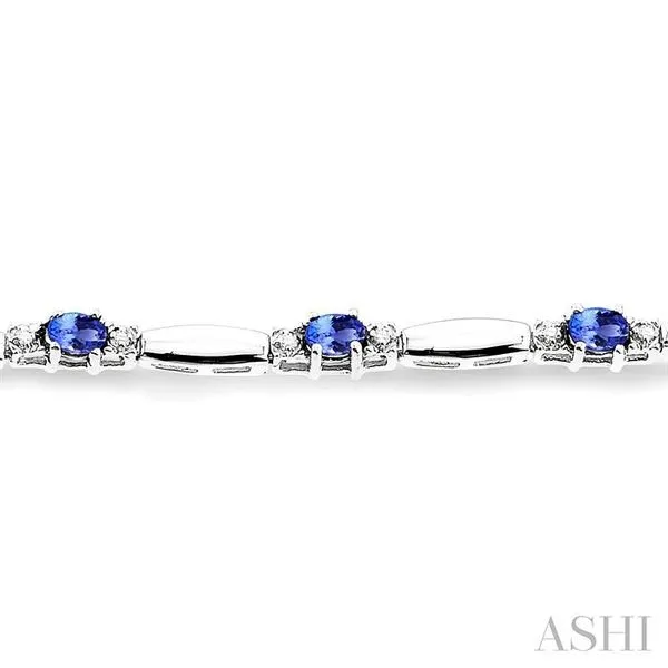 (319) 752-31965x3 MM Oval Cut Tanzanite and 1/10 Ctw Bar and Oval Mount Round Cut Diamond Precious Bracelet in 10K White Gold