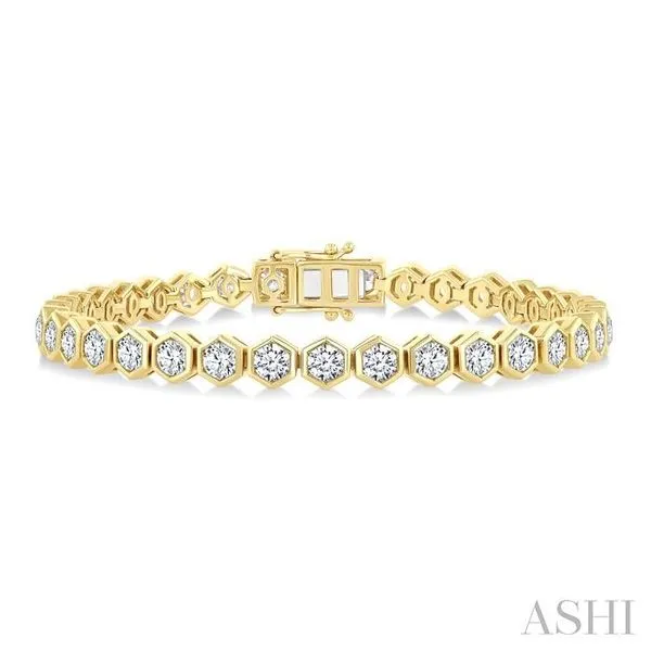 (319) 752-31967 Ctw Hexagon Motif Bezel Set Round Cut Diamond Tennis Bracelet in 14K Yellow Gold