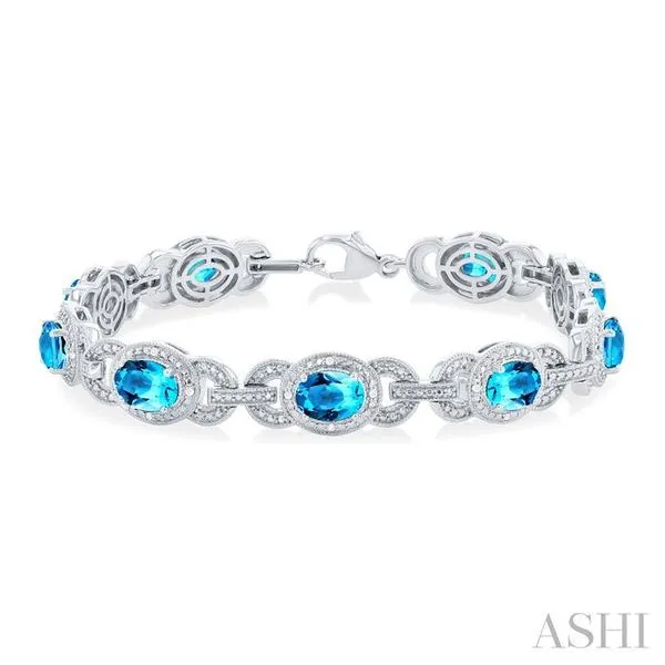(319) 752-31967x5 MM Oval Shape Blue Topaz and 1/10 Ctw Round Cut Diamond Semi-Precious Bracelet in Sterling Silver
