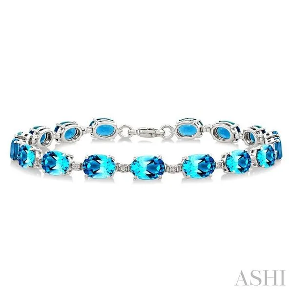 7X5 MM Oval Shape Blue Topaz and 1/10 Ctw Single Cut Diamond Semi-Precious Bracelet in Sterling Silver Image 2 Becker's Jewelers Burlington, IA