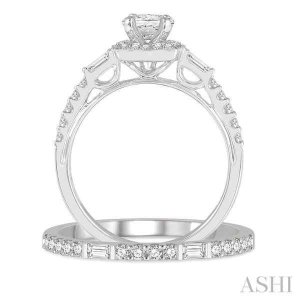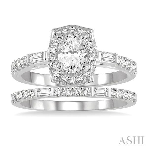 (319) 752-31961 Ctw Baguette and Round Cut Diamond Wedding Set With 3/4 Ctw Cushion Shape Oval Cut Engagement Ring and 1/5 Ctw Wedding Band in 14K White Gold