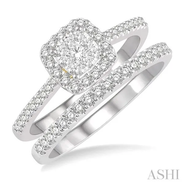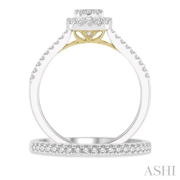 (319) 752-31961/2 Ctw Lovebright Diamond Wedding Set With 1/3 Ct Square Shape Engagement Ring in White and Yellow Gold and 1/5 Ct Wedding Band in White Gold in 14K