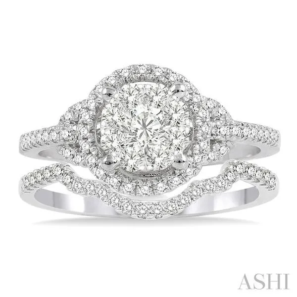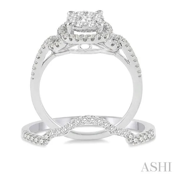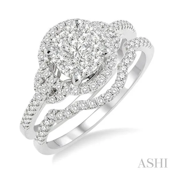 (319) 752-31963/4 Ctw Diamond Wedding Set with 5/8 Ctw Lovebright Round Cut Engagement Ring and 1/10 Ctw Wedding Band in 14K White Gold