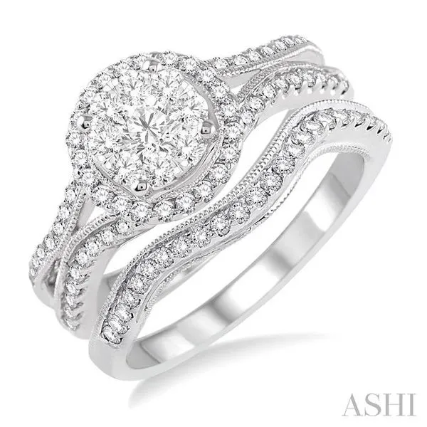 (319) 752-31967/8 Ctw Diamond Wedding Set with 3/4 Ctw Lovebright Round Cut Engagement Ring and 1/6 Ctw Wedding Band in 14K White Gold