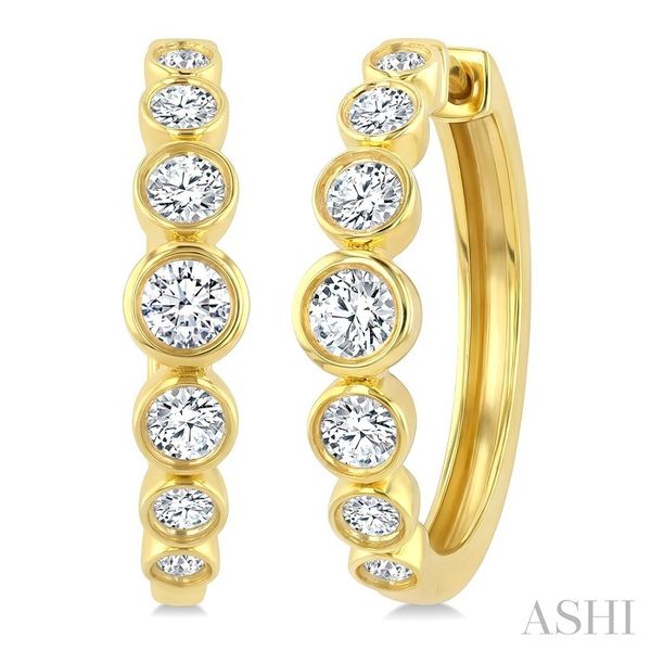 1 1/10 Ctw Graduated Bezel Set Round Cut Diamond Fashion Hoop Earrings in 14K Yellow Gold Becker's Jewelers Burlington, IA