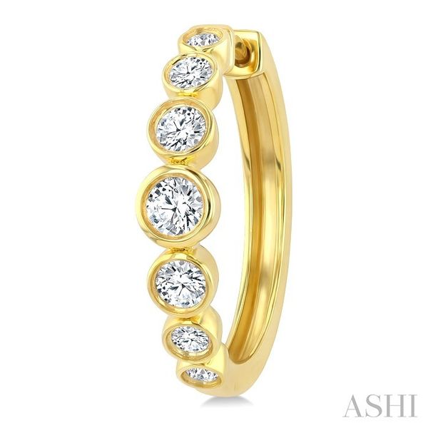 1 1/10 Ctw Graduated Bezel Set Round Cut Diamond Fashion Hoop Earrings in 14K Yellow Gold Image 3 Becker's Jewelers Burlington, IA
