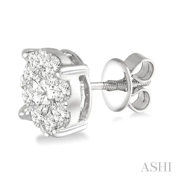 1 1/2 Ctw Lovebright Round Cut Diamond Stud Earrings in 14K White Gold Image 4 Becker's Jewelers Burlington, IA