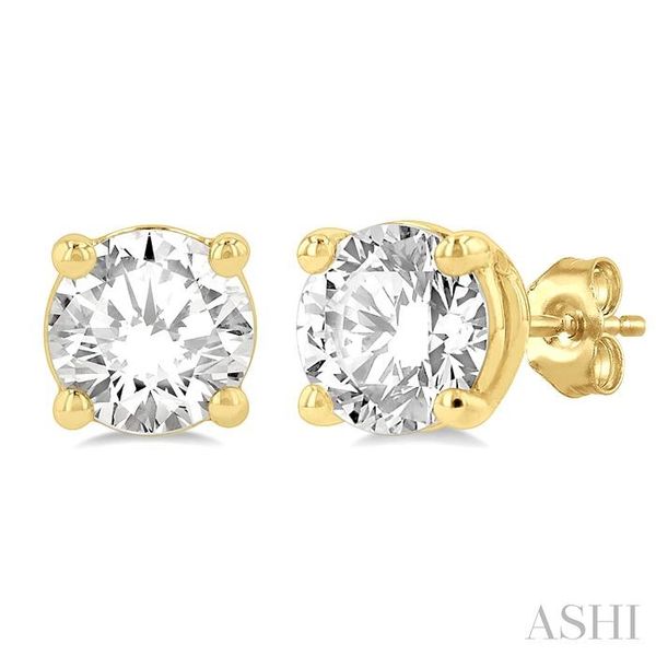 1 1/2 Ctw Round Cut Diamond Stud Earring in 14K Yellow Gold Image 3 Becker's Jewelers Burlington, IA