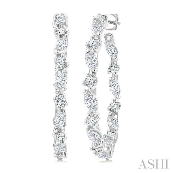 1 1/6 Ctw Inside & Outside Marquise and Round Cut Diamond Fashion Open Hoop Earrings in 14K White Gold Image 2 Becker's Jewelers Burlington, IA