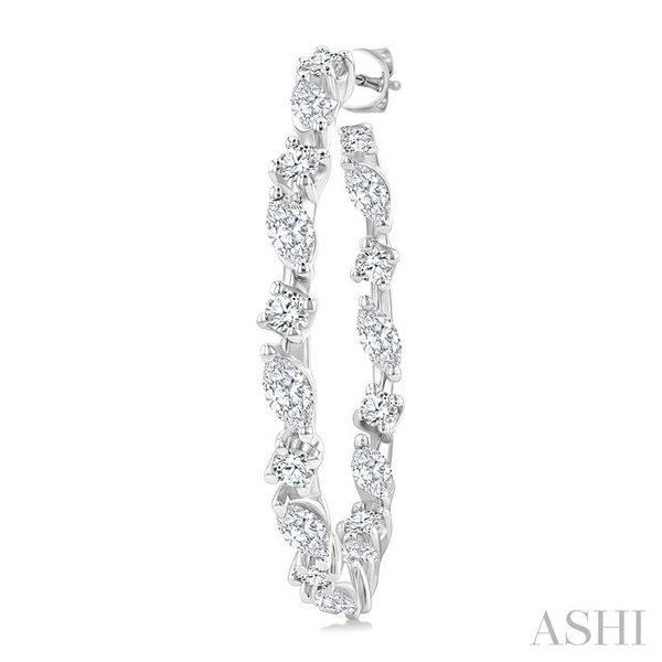 1 1/6 Ctw Inside & Outside Marquise and Round Cut Diamond Fashion Open Hoop Earrings in 14K White Gold Image 3 Becker's Jewelers Burlington, IA