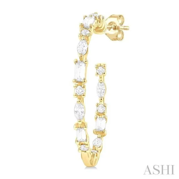 (319) 752-31961 1/6 Ctw Inside & Outside Mixed Diamond Cut Fashion Open Hoop Earrings in 14K Yellow Gold