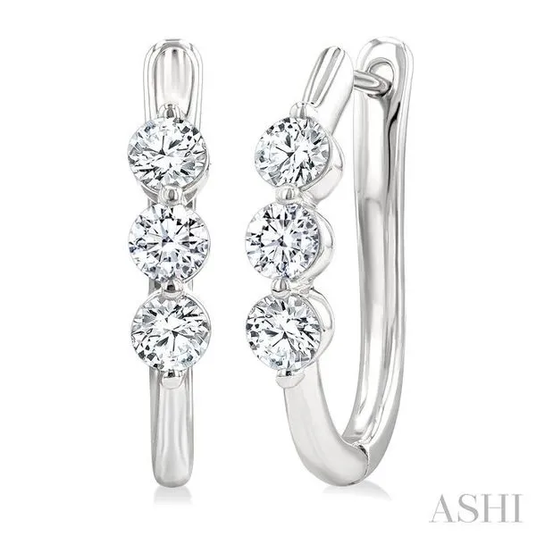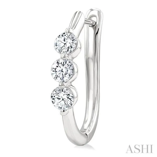 (319) 752-31961 Ctw 3-Stone Round Cut Diamond Fashion Hoop Earring in 14K White Gold