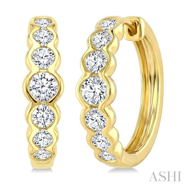 1 Ctw Graduated Bezel Set Round Cut Diamond Fashion Hoop Earrings in 14K Yellow Gold Image 2 Becker's Jewelers Burlington, IA