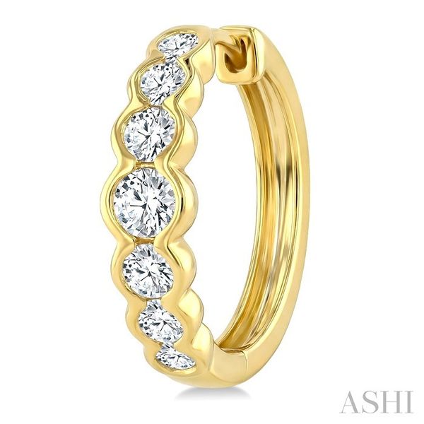 1 Ctw Graduated Bezel Set Round Cut Diamond Fashion Hoop Earrings in 14K Yellow Gold Image 3 Becker's Jewelers Burlington, IA