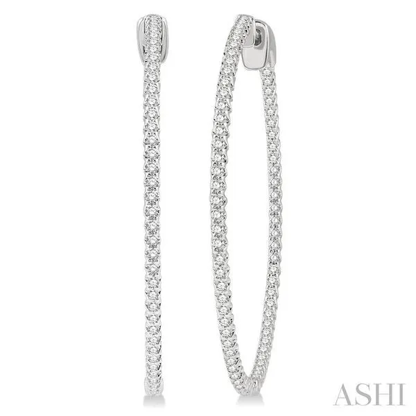 (319) 752-31961 Ctw Inside-Out Round Cut Diamond 1 1/2 Inch Hoop Earrings in 14K White Gold